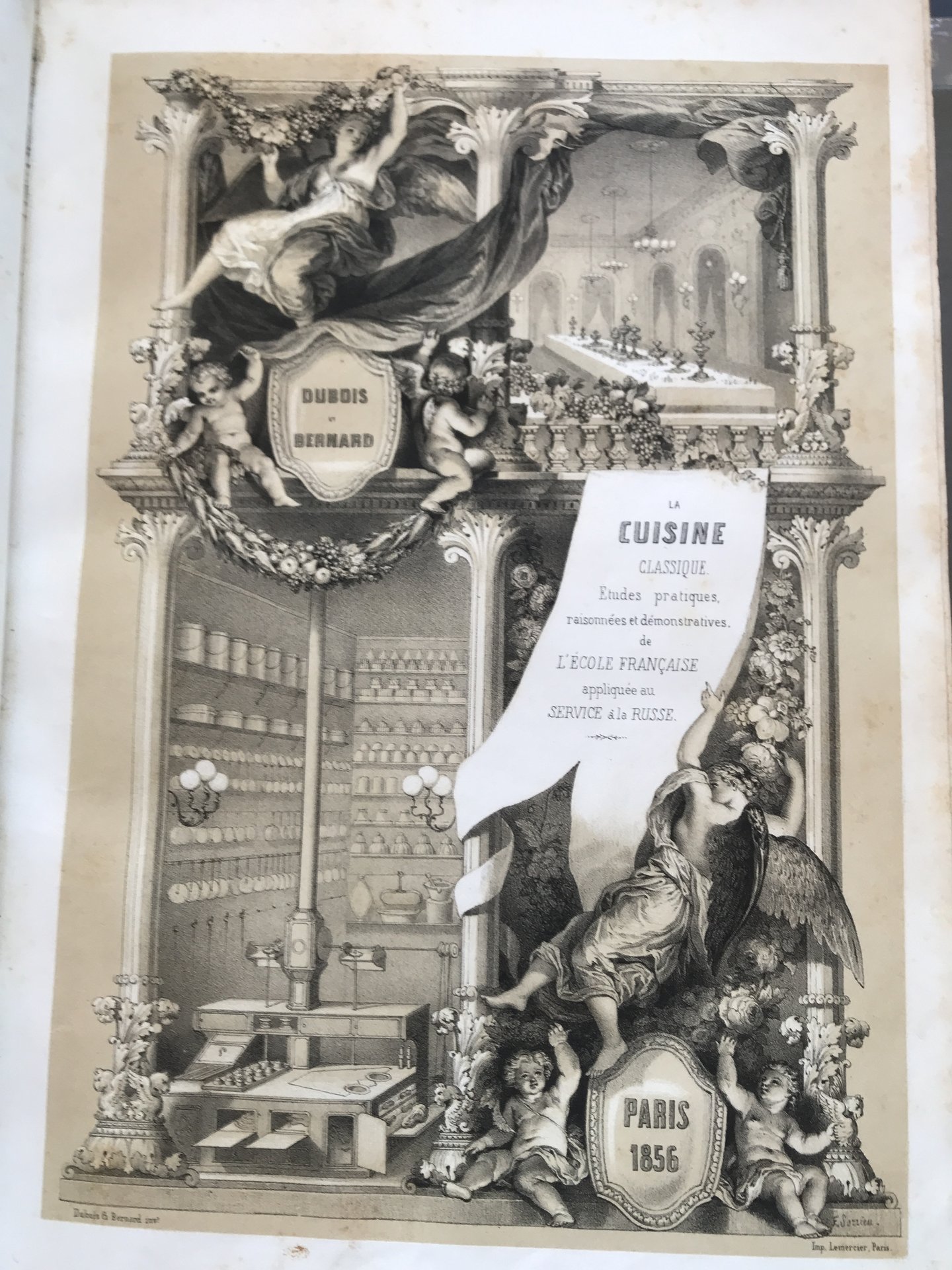 La cuisine classique. Etudes pratiques, raisonnees et demonstrative de L'Ecole Française appliquee au Service a la Russe. Ouvrage illustre d'un frontispice allegorique et de 215 dessins inedits, embrassant dans son cadre toutes les prescriptions culinaires, d'apres l'ordre et les principes de la haute Ecole.