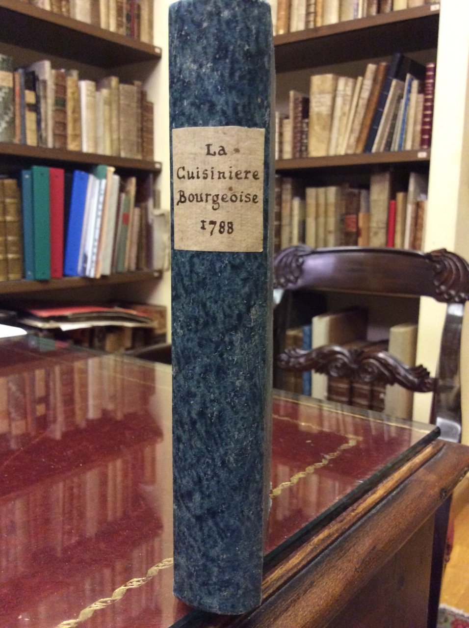 In-16 p. (mm. 170x92), cartonato muto mod., tit. ms. al dorso, pp. 360. Divisa in XVI capitoli di cui l'ultimo è consacrato a De l'office - Des conserves - Des cremes de dessert, et fromages à la creme, l'opera contiene "la manière de disséquer, connoitre et servir toutes sortes de viandes. Dernière édition augmentée de plusieurs ragouts des plus nouveaux, et de différentes recettes pour les liqueurs.Cfr. Vicaire, p. 235 che cita le numerosiss. edizioni del Sette e Ottocento, ma non la ns.: "Livre devenu classique. L'Auteur de ce traité anonyme est Menon".Solo qualche lieve alone o uniforme arross., altrimenti esemplare ben conservato.