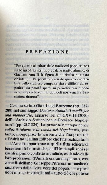 Gaetano Amalfi (Piano di Sorrento 1855-Napoli 1928), magistrato, fu tra i maggiori studiosi di folklore campano nei decenni a cavallo dei due secoli in cui visse ed operò. Fu autore di un centinaio di pubblicazioni, ormai reperibili solo al mercato antiquario o nelle biblioteche, fatte salve quelle poche che hanno goduto di una ristampa.