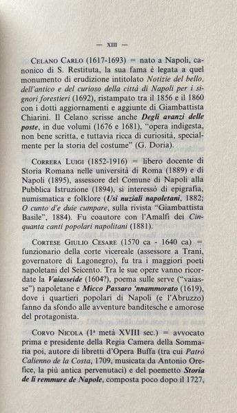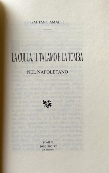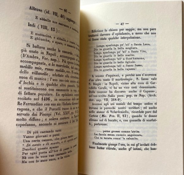 Soggetti: Ottocento Usi Costumi Etichetta Folklore Napoli Cultura popolare napoletana Partenope Regno Iconografia Localistica Proverbi Miti Leggende Società Storia locale Genealogia Tradizioni popolari Studi culturali Ristampe anastatiche Autori napoletani Opere Dizionari Critica Aneddoti Curiosità Dialetto napoletano Intellettuali Musica Folkloristi Archivio storico Campania Scrittori Superstizione Morte Animali Matrimonio Famiglia Usi nuziali Culla Tomba Letto Talamo nuziale Nozze Riti funebri Rituali Scaramanzia Iettatura Gelosie amorose Tradimenti Relazioni Bibliografia Riferimento Borbone Reali Aragonesi Aragona Corona Costiera Capri Carlo Celano Giulio Cesare Cortese Benedetto Croce Raffaele D'Ambra Giovan Battista Basile Giordano Bruno Feste Cerimonie Carafa Angiò San Gennaro Annunziata De Boucard Gonzaga Del Tufo Nunziante Pagano Mastriani Fiabe Palizzi Pittori Pittura Sorrento Massa Lubrense Masaniello Biografie Memorie Pentamerone Vincenzo Braca Bartolomeo Capasso Filosofia Candelaio Luigi Correra Lo cunto de li cunti Francesco De Bourcard Andrea De Jorio Nobiltà Vittorio Imbriani De Sanctis Letterati Roberto Guiscardi Marco Monnier Camorra Bartolo Longo Pompei Ciucceide Nicolò Lombardo Poesia Poeti Velardiniello Canzoni napoletane Jacopo Sannazaro Letteratura Teatro D'Ascoli Doria Funerali Usi natalizi Usanze Amalfi Santi Penisola sorrentina Vintage Fuori catalogo Libri rari Etnografia Canti Cerreto Sannita Avellino Benevento Festività Boccaccio Aversa Filippo Sant'Antonio Abate Antuono Settembrini Somma Vesuviana Zito Uses customs Society Local Genealogy Cultural traditions Studies Anastatic reprints Authors Works Dictionaries Criticism Bibliography Anecdotes Curiosities Neapolitan dialect Intellectuals Nineteenth century Historical archive Writers Biographies Memories History Philosophy Nobility Bourbon Kingdom Literati Poetry Poets Music Literature Theater Christmas Funerals Amorous Parthenope Weddings Saints Out of print Rare books Festivities Ethnography Songs Fair tales Bambini Childs Dance Danze Balli Giannone Olio santo Zitelle Teggiano Cradle Tomb Bridal bed Wedding Rituals Superstition Misfortune Jealousies
