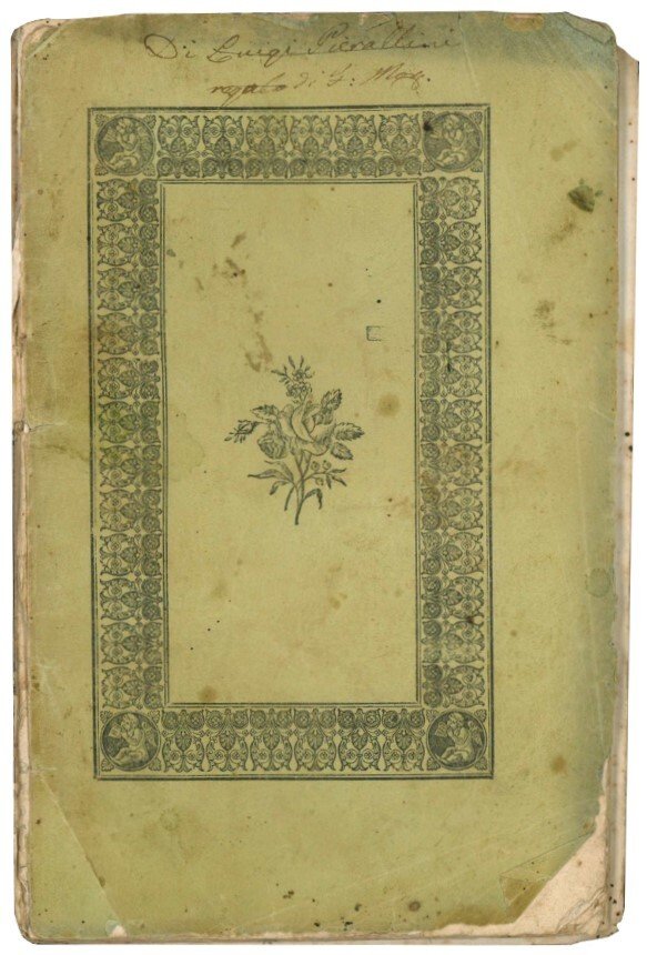 Mm. 201x129. Pp. 64. C. occasionalmente fiorite, firma di possesso al frontespizio e alla cop. ant. Testo latino e trad. italiana di Massimiliano Pelegatti a fronte. Opuscolo editoriale con titolo in cornice alla cop. ant. Cop. parzialmente staccata dal corpo del testo. Prima ed unica edizione.