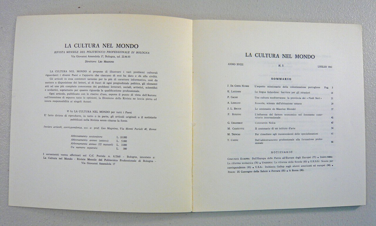 LA CULTURA NEL MONDO n.5 1962.Mensile del Politecnico Professionale di Bologna