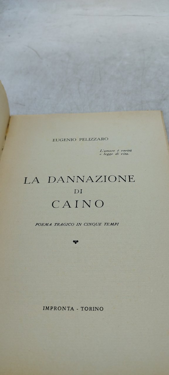 eugenio pelizzaro la dannazzione di caino poema tragico. , impronta torino 1955 italiano, 167 °°