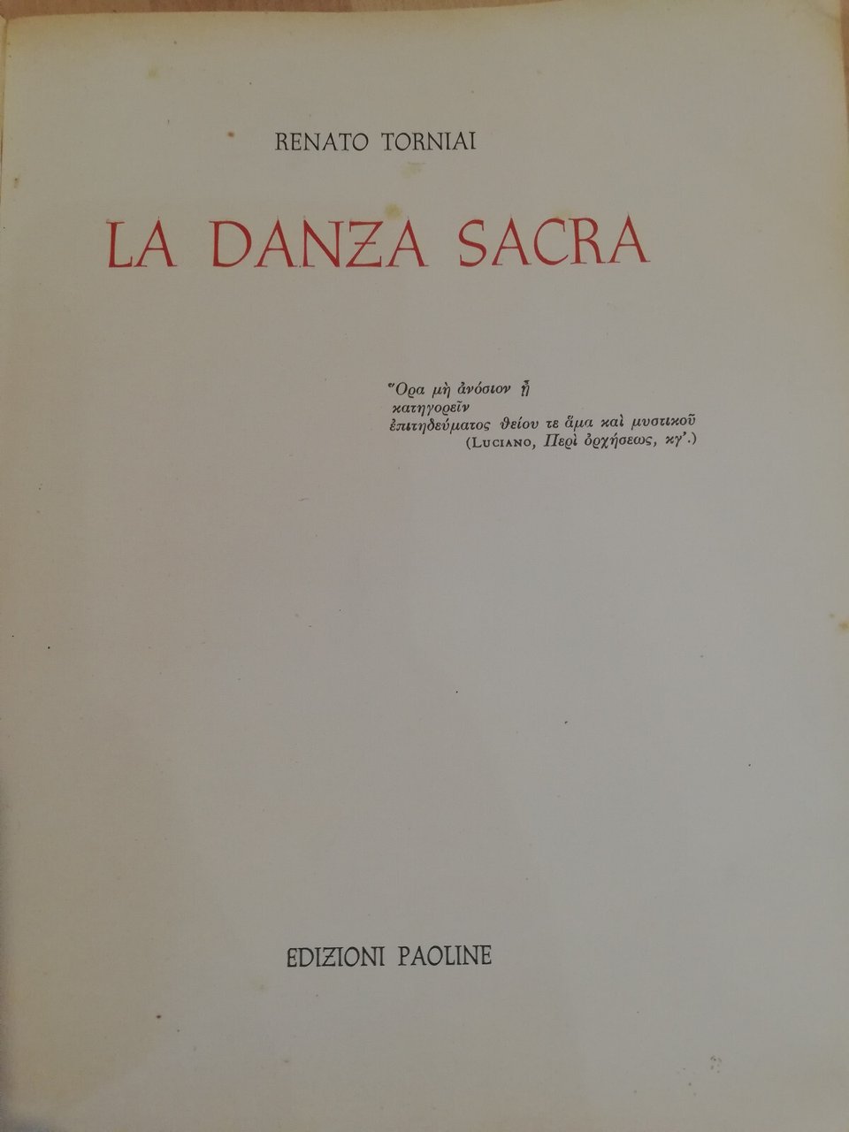 La danza sacra, Renato Torniai, Edizioni Paoline, 1951