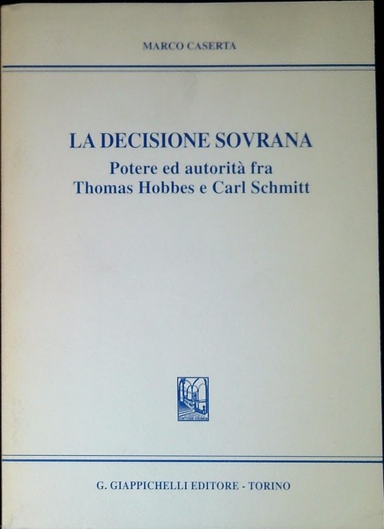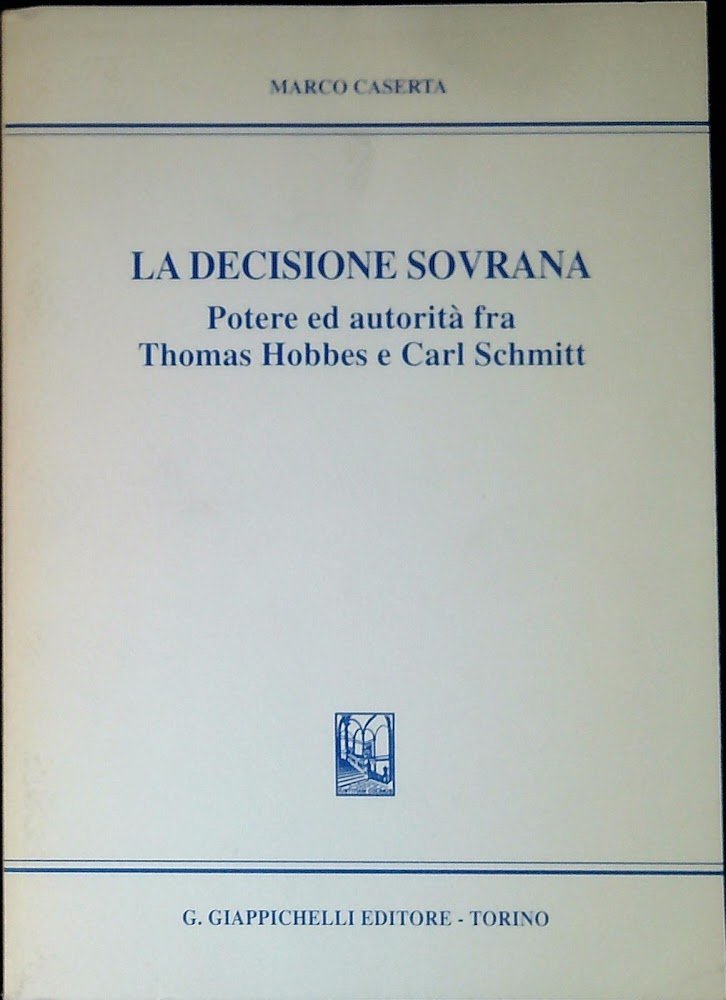 Caserta, Marco La decisione sovrana : potere e autorità fra Thomas Hobbes e Carl Schmitt. Torino, Giappichelli 1996, 130 p. ; 24 cm. (64960)