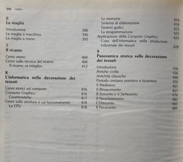 Ringrazio infine i colleghi e le persone che mi hanno dato utilissimi suggerimenti per la stesura del presente volume e tutti coloro che mi hanno gentil mente fornito materiale illustrativo da inserire in questo testo. Spero vivamente che questo mio lavoro risulti utile a tutti gli interessati all'argomento o che si accingano ad intraprendere la carriera di stilista specializzato nella decorazione dei tessuti.