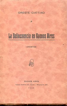 In-16°, pp. 124, brossura editoriale. Prima edizione di curioso studio sulle cause sociali della delinquenza nella capitale argentina. Il Ciattino, nato a Vigliano d'Asti (non conosciamo la sua data di nascita) e morto a Buenos Aires nel 1970, fu poligrafo, studioso di temi sociali e assiduo divulgatore della cultura italiana in Argentina, paese dove si era trasferito giovanissimo. Fu anche corrispondente di Piero Gobetti, nonché Commendatore dellOrdine al Merito della Repubblica Italiana, che donò la sua importante biblioteca di 4000 volumi alla Dante Alighieri di Buenos Aires.