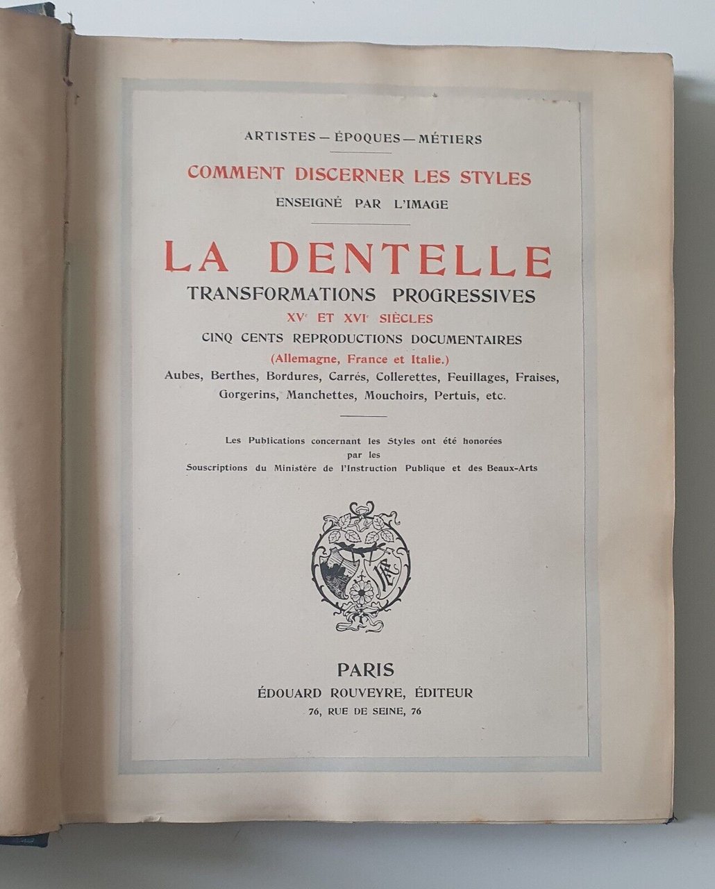 LA DENTELLE TRANSFORMATIONS PROGRESSIVES PARIS E. ROUVERYE ED. In 4°, legatura editoriale, copertina telata con titolo applicato, ill. in b/n.In ottime condizioni, lievissimi segni alla copertina.