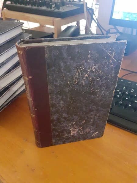 Mezzapelle con decorazioni e scritte in oro. Interni ingialliti e con leggere tracce di umidità, ma la rilegatura è robusta.