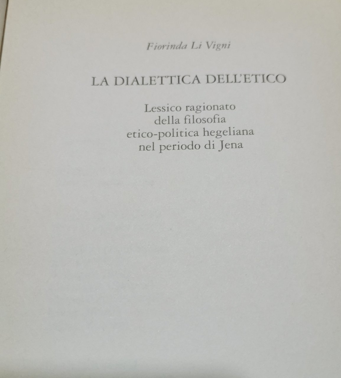 La Dialettica dell'Etico- Lessico ragionato della filosofia etico - politica hegeliana del periodo di Jena