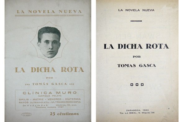 Zaragoza, La Ideal, 1923 ("La Novela Nueva"). 8vo.; 31 pp. Cubiertas originales.
