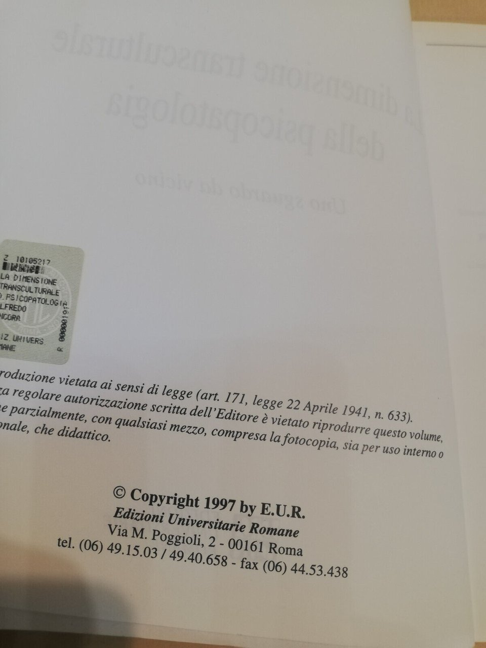 La dimensione transculturale della psicopatologia, Alfredo Ancora, EUR, 1997