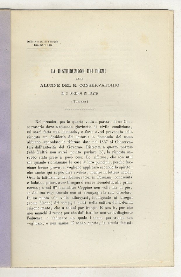 Firenze, M. Cellini, 1872, in-8, br., pp. 8. In fine: elenco delle alunne premiate. Estratto.