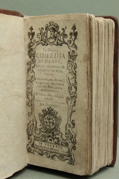 La Divina Comedia di Dante, con gli argomenti, & allegorie per ogni canto. E due indici, uno di tutti i vocaboli piu importanti usati dal poeta, con la esposition loro, e l'altro delle cose piu notabili.