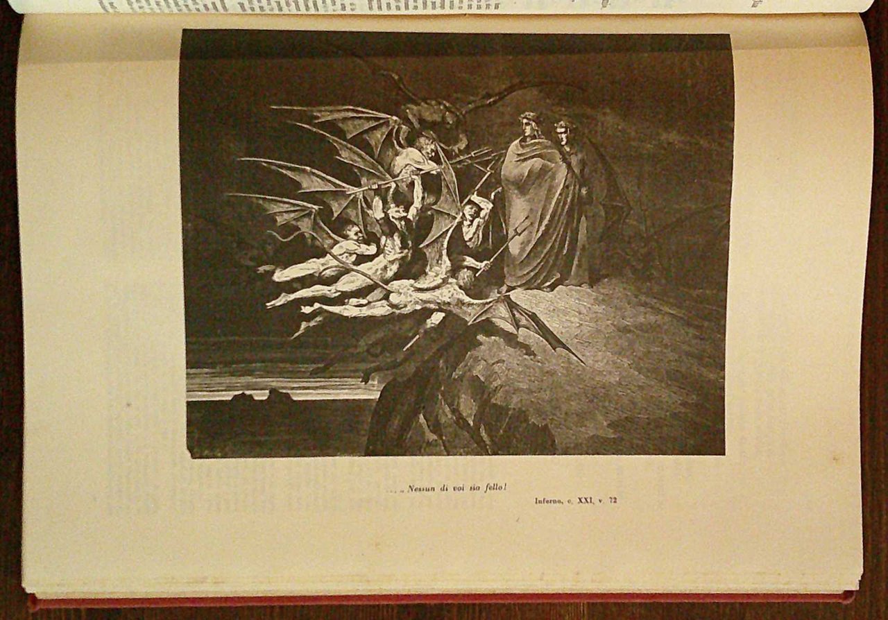 Commentata da Giuseppe Villaroel. Moltissime illustrazioni monocromatiche f.t. di Gustavo Dorè. Ed. Armando Curcio - Roma, 1951. Tela editoriale con titoli in oro al piatto e al dorso leggermente scoloriti. Lievi ombrature e piccole imperfezioni alla tela del piatto anteriore. Interno perfetto. 27x38; pp.565. Ottimo stato. , Ottimo (Fine)