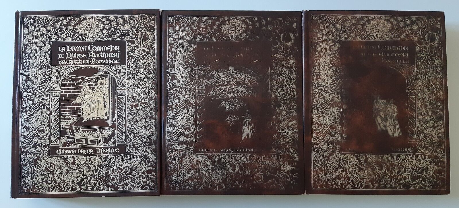 Lievi graffi agni angoli della copertina, purgatorio e paradiso hanno la copertina parzialmente consumata.