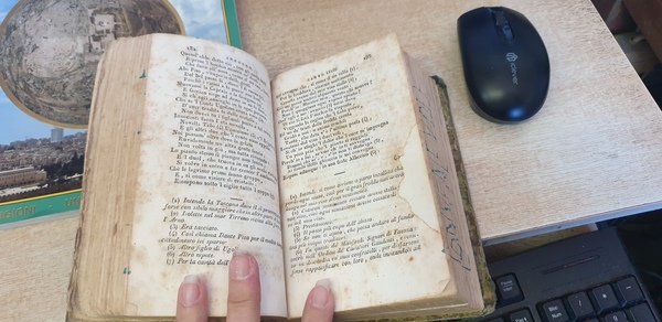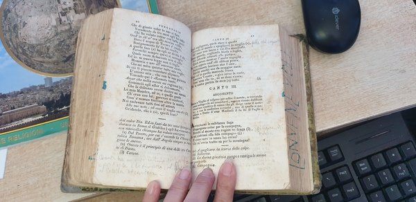 Vol. tre riligati assieme in-16° pp. 190-199-194, leg. in mezza pelle coeva con piatti danneggiati, tit. in oro e targhetta al dorso. Annotazioni n.t. Mancante del 2° frontesp. Sparse fioriture. Scritta a penna su taglio. Pag. lievemente danneggiate da una collocazione in luogo umido.