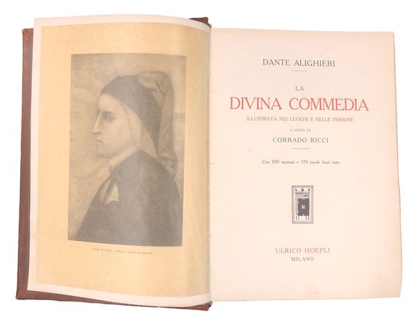 La DIVINA COMMEDIA ILLUSTRATA nei LUOGHI e nelle PERSONE. A cura di Corrado RICCI. Con 700 INCISIONI e 170 TAVOLE fuori testo. Edizione di gran lusso per il 6° centenario dantesco. Tiratura limitata di 1000 esemplari numerati (n. 242)