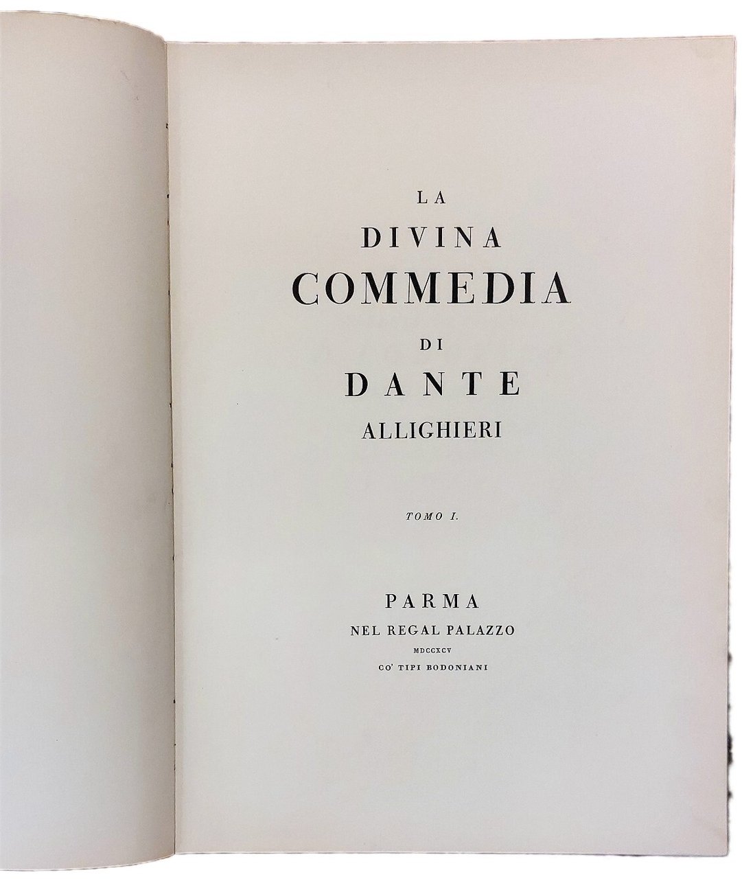 >3 vol. in-folio, pp. XXXVI, 205, VII; pp. 207, XX; pp. 207, XXXVII, legatura in cartone editoriale "alla bodoniana" con titolo su tassello al dorso, al piatto anteriore riquadro impresso a secco. Allegata al primo volume, impressa su fascicolo a parte, la "Notizia introduttiva di Angelo Ciavarella", che fu direttore della Biblioteca Palatina e del Museo Bodoniano di Parma. Splendida riproduzione anastatica dell'edizione bodoniana del 1795.