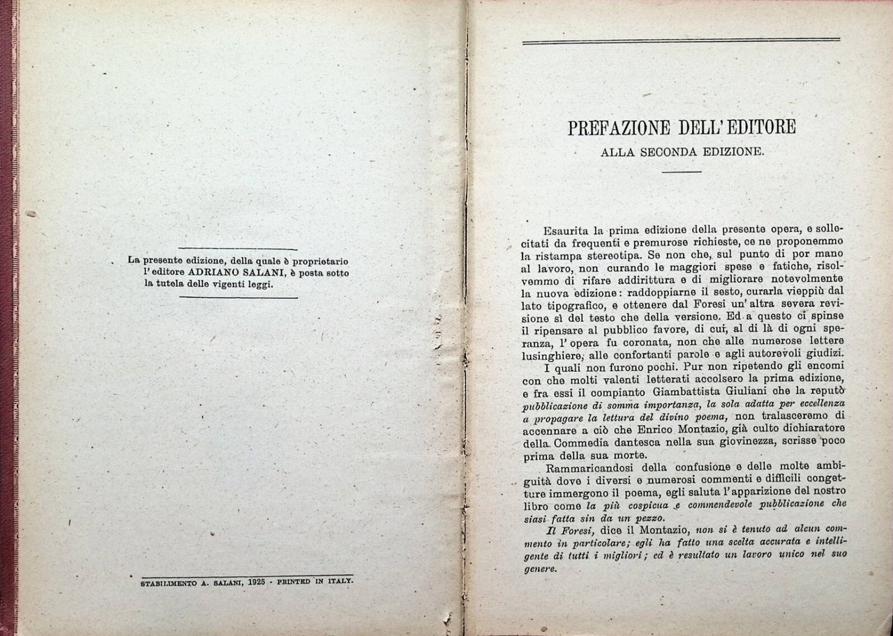 La Divina Commedia Voltata in Prosa 1 Dante Foresi Testo a Fronte Salani 1925