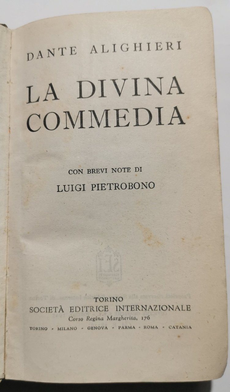 In 16', br.ed., pp.746; brevi note di L.Pierobono, ritratto in n. in antiporta; segni d'uso alla cop, sagoma deformata, fioriture ai risguardi e ai tagli, interno discreto. ***Due to bureaucratic reasons, books dated over 70 years old cannot be immediately exported, please contact us before placing the order.***