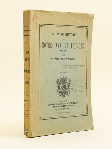 5e édition, 1 vol. in-8 br., Librairie Générale Catholique, Arthur Savaète, Paris, s.d, 222 pp. Etat très satisfaisant (étiquettes de cote en garde, anciens cachets d'institution religieuse, bon état par ailleurs).