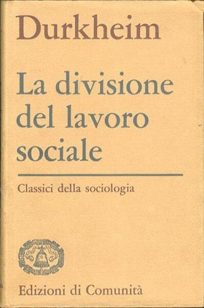 XXXVI, 413 p. ; 25 x 16 cm. Classici della sociologia. Al centro di questo grande classico c'è uno dei temi più dibattuti e fertili per gli studi sulla modernità: la relazione tra individui e collettività. La società moderna comporta una differenziazione estrema di funzioni e mestieri: come può mantenere la necessaria coerenza intellettuale e morale? E, in generale, come può un gruppo di individui costituire una società? le categorie che Durkheim ha forgiato per rispondere a questi interrogativi - dal concetto di coscienza collettiva alle distinzioni tra solidarietà meccanica e solidarietà organica, e tra società segmentarie e società in cui compare la distinzione del lavoro concorrono a delineare un innovativo punto di vista olistico sui fatti sociali: la sociologia si fonda sulla priorità del tutto sulle parti, e il sistema sociale è irriducibile alla somma dei suoi elementi. È l'individuo a nascere dalla società, non la società dagli individui, poiché l'individuo è espressione della collettività. Per Durkheim, dunque, la divisione del lavoro struttura tutta la società, e non può essere ridotta alla mera organizzazione tecnica o economica delle attività produttive, come sembrano credere gli economisti. La differenziazione sociale, fenomeno caratteristico delle società moderne, è la condizione creatrice della libertà individuale. Introduzione di Alessandro Pizzorno. Legatura editoriale, coperta in cartone rigido telato di colore rosso, titolo impresso in oro al dorso, muto il piatto. Sovraccoperta in carta colorata. Lievi segni del tempo ai tagli (imbrunimento della carta), per il resto esemplare integro. Codice libreria 7436.