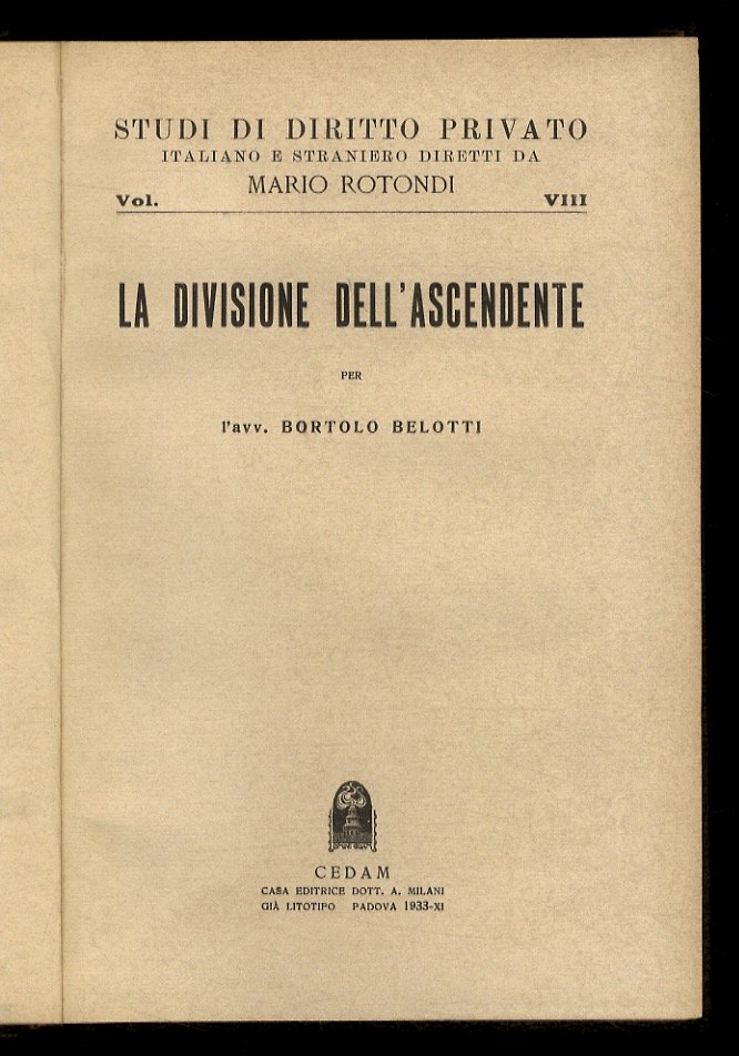 Padova, Cedam, 1933, in-8, legatura coeva in mezza tela, pp. 260. Dagli "Studi di diritto privato italiano e straniero diretti da Mario Rotondi", vol. VIII. Ottime condizioni.