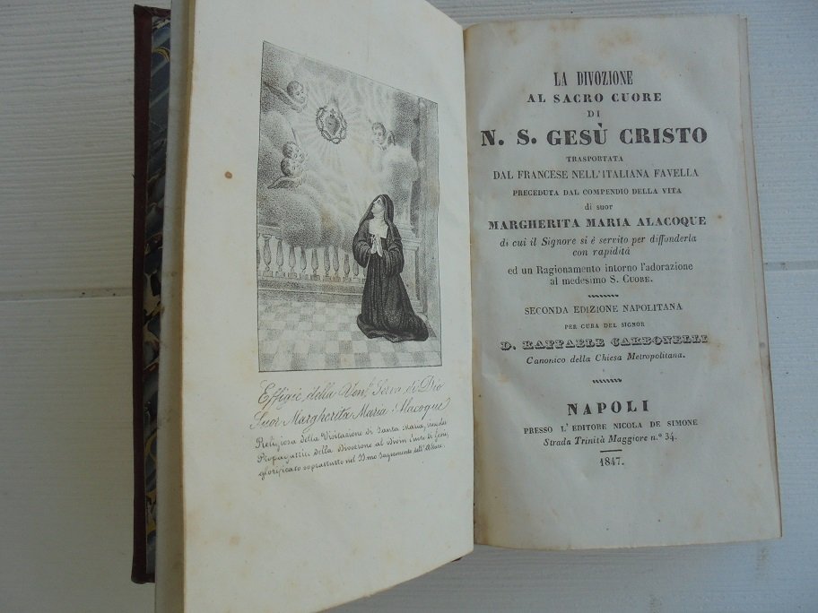 LA DIVOZIONE AL SACRO CUORE DI N.S. GESU` CRISTO Trasportata dal Francese nell`Italiana favella preceduta dal compendio della vita di Suor Margherita Maria Alacoque. Seconda Edizione Napolitana per cura del Sig. D. Raffaele Carbonelle.