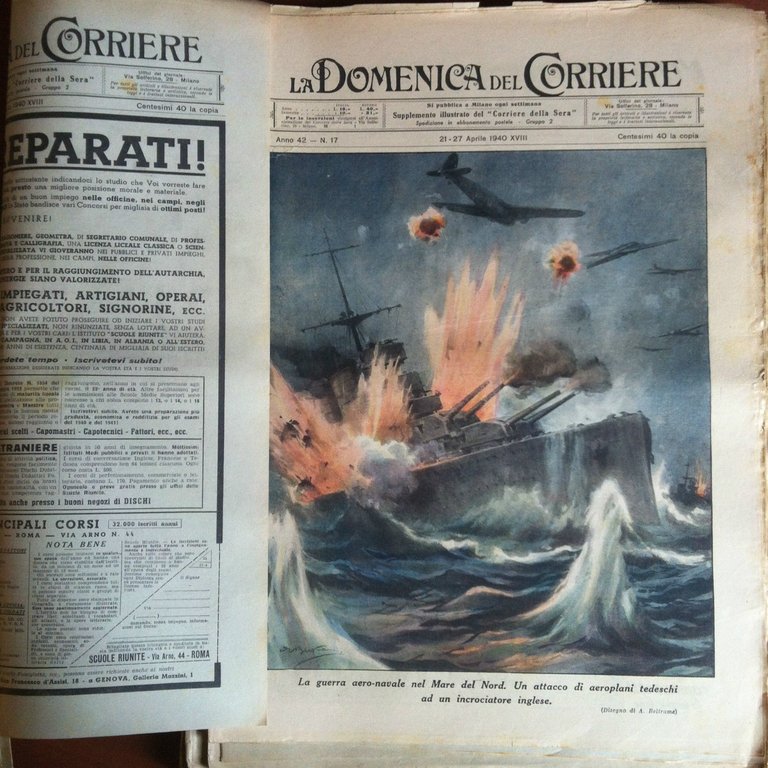 La Domenica del CorriereAll'interno disegno di A. Beltrame: La guerra aero-navale nel Mare del Nord - Attacco aeroplani tedeschi ad incrociatore ingleseAvanzata tedesca in Norvegia In buono stato (50 g)E7234