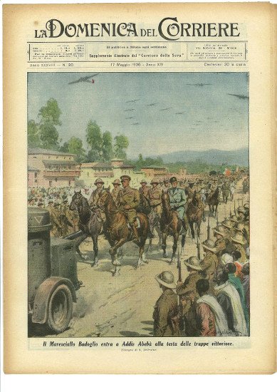 Fascicolo originale e completo. Disegno di A. Beltrame. - il Maresciallo Badoglio entra a Addis Abeba alla testa delle truppe vittoriose