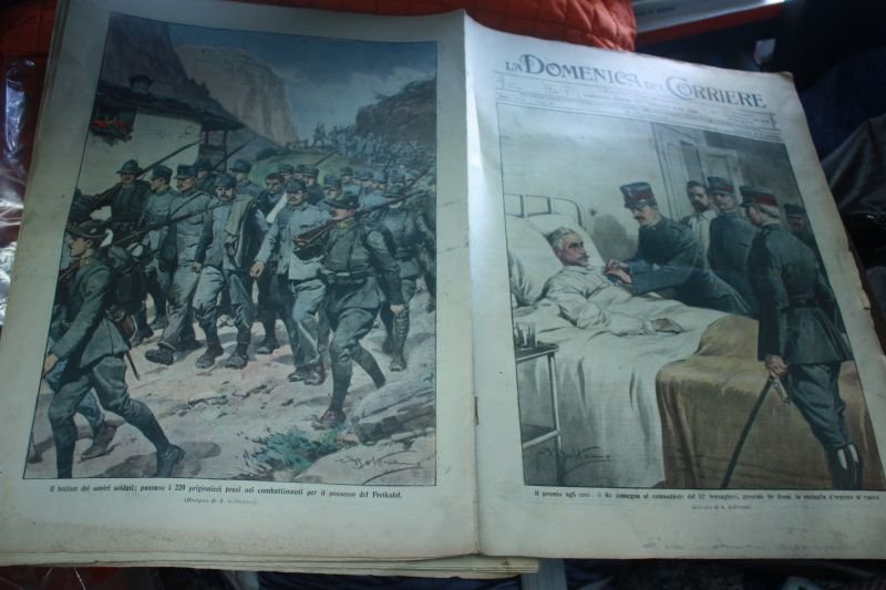 CODICE 526, , La Domenica Del Corriere Num 25 1915 Il Re Consegna Al Comandante Del 12 Bersaglieri Generale De Rossi La Medaglia D'argento Al Valore, , PAG 15 , SUL RETRO IL BOTTINO DEI NOSTRI SOLDATI PASSANO I 220 PRIGIONOERI PRESI NEI COBBATIMENTI PER IL POSSESSO DEL FREIKOFEL, SEGNI D'USURA, , COIDCE 526