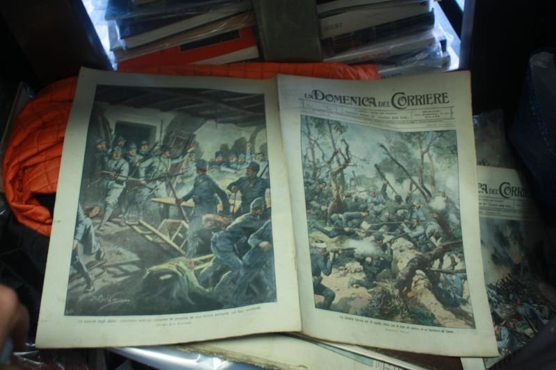 CODICE 537, LA DOMENICA DEL CORRIERE NUM 36 SETTEMBRE 1915 LA MISCHIA FURIOSA DEL 26 AGOSTO FINITA CON LA FUGA DEL NEMICO IN UN BOSCHETTO DEL CARSO DISEGNO BELTRAME, PAG 15, CM 28,5 X 37 CM, SUL RETRO, LE AUDACIE DEGLI ALPINI ESPLORATORI AUSTRIACI CATTURATI DI SORPRESA DA UNA NOSTRA PATTUGLIA SUL LORO TERRITORIO