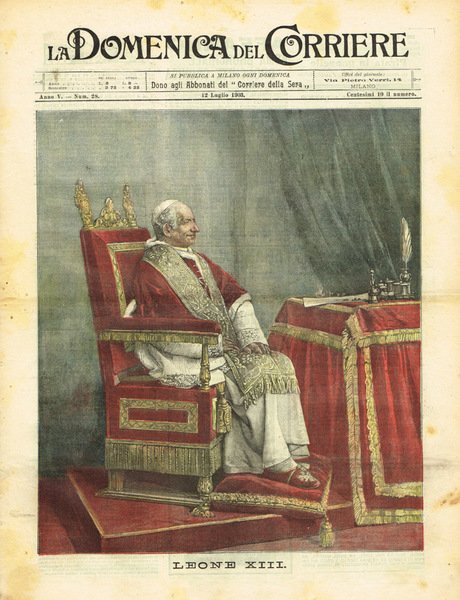 Suppl.to settimanale n.28 del 12 lug.1903, copertina editoriale illustrata da disegni a colori di A.Beltrame, al piatto ant.ritratto di Leone XIII, ingiallita, con fioritura e strappi lungo il dorsetto, pagine ingiallite, con bruniture ai bordi, fioritura ed illustrazioni in nero nei testi. Numero pagine 15