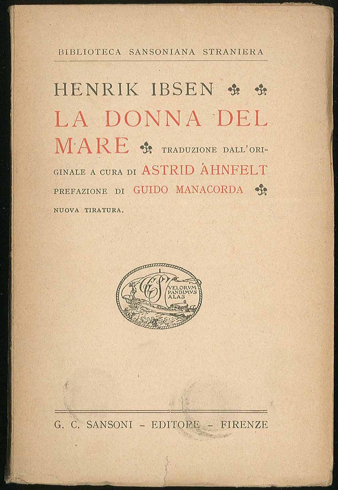Collana "Biblioteca Sansoniana straniera" 16. Traduzione dall'originale a cura di Astrid Ahnfelt, prefazione di Guido Manacorda. Volumetto intonso con pagine ingiallite, dorso brunito con fioriture, ammaccature in copertina e strappetto, etichetta in quarta. Leggera usura da scaffale