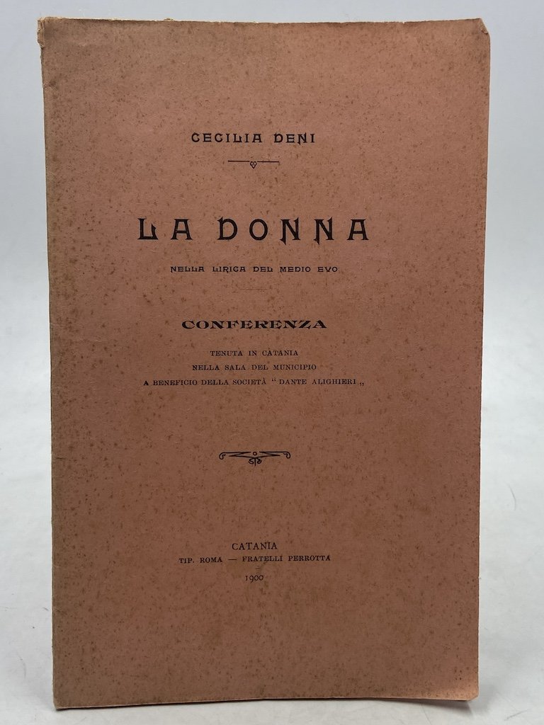 LA DONNA NELLA LIRICA DEL MEDIO EVO. Conferenza tenuta in Catania nella Sala del Municipio a beneficio della Società Dante Alighieri.