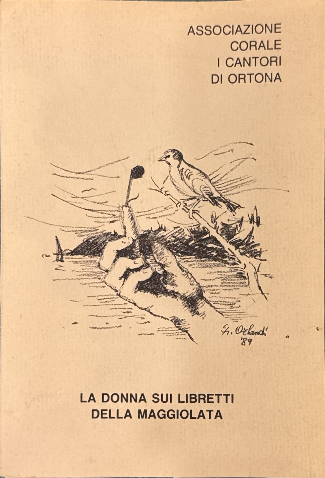 Serie di 7 cartoline contenute in cartellina con disegno di Gabriele Orlandi; Associazione corale I cantori di Ortona 1989