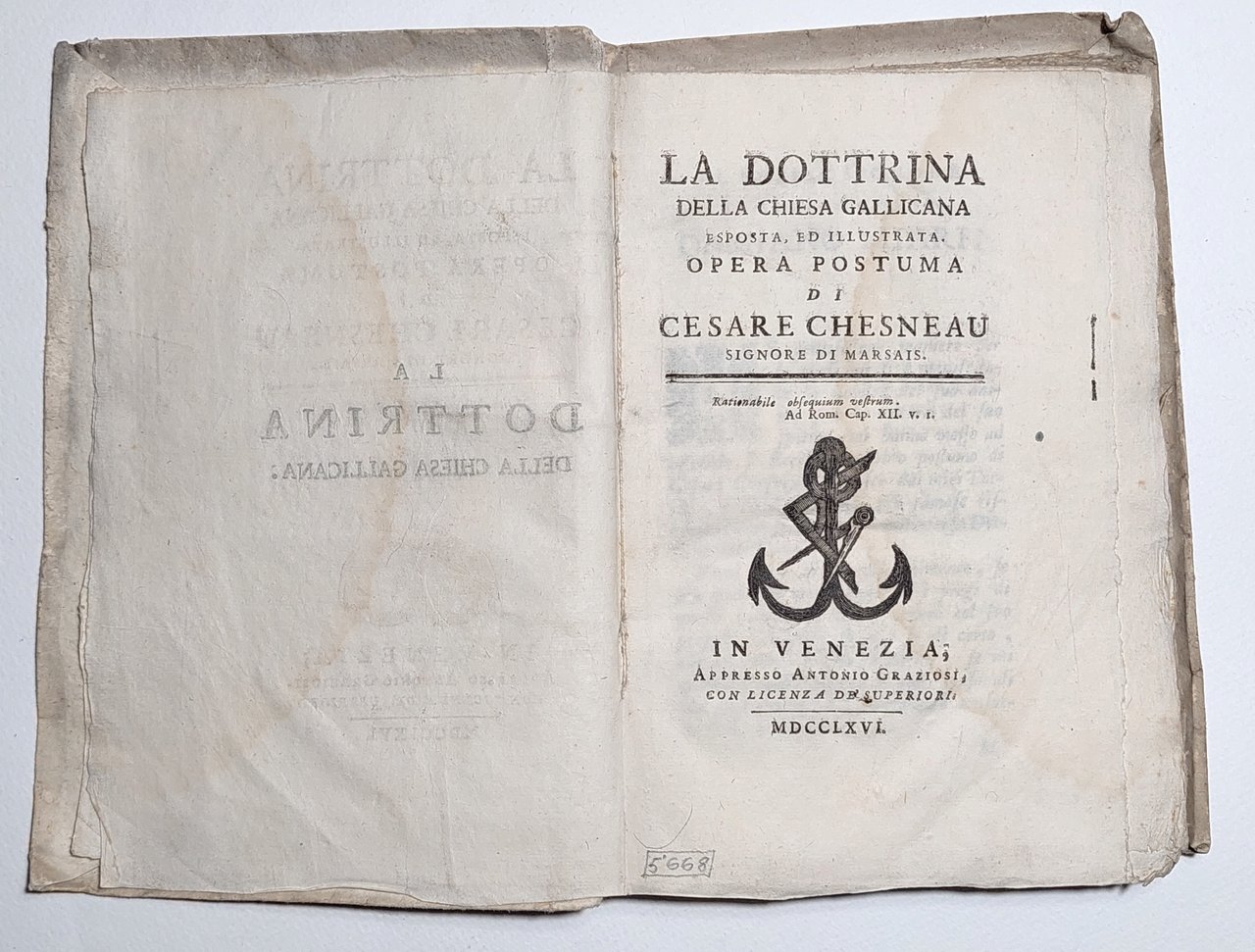 La dottrina della chiesa gallicana esposta ed illustrata opera postuma di Cesare Chesneau signore di Marsais in Venezia appresso Antonio Graziosi 1766