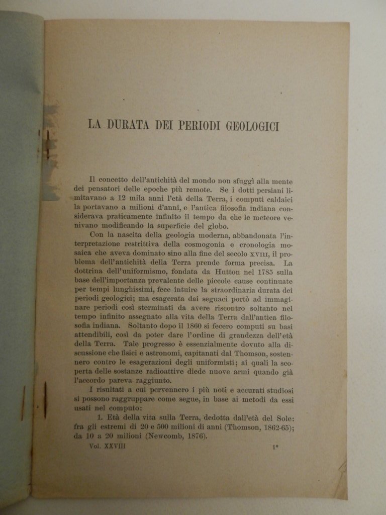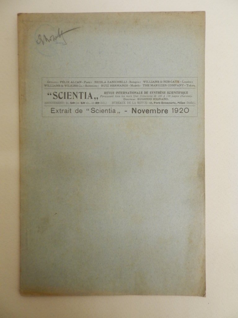 8^, pp. (12), brossura editoriale, Estratto da Scientia, revue internationale de Synthèse scientifique, Novembre 1920. una tavola esplicativa delle teorie del Cortani che divergono leggermente dalle teorie del tempo, rari segni a matita nel testo. Esemplare molto buono. *** TUTTI I NOSTRI LIBRI SONO VISIBILI PREVIO CONTATTO MAIL O TELEFONO NELLA NUOVA SEDE DI MILANO: LIBRERIA COSMOPOLIS, VIA JOMMELLI, 22. ***