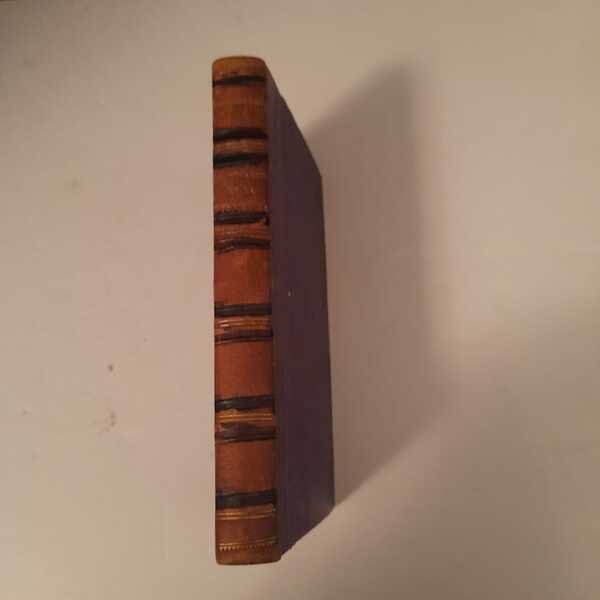 Volume in 8° legatura in mezza pelle coeva e piatti in tela , con 6 nervetti e iscrizioni in oro sul dorso. Pagine bianche,legatura salda.