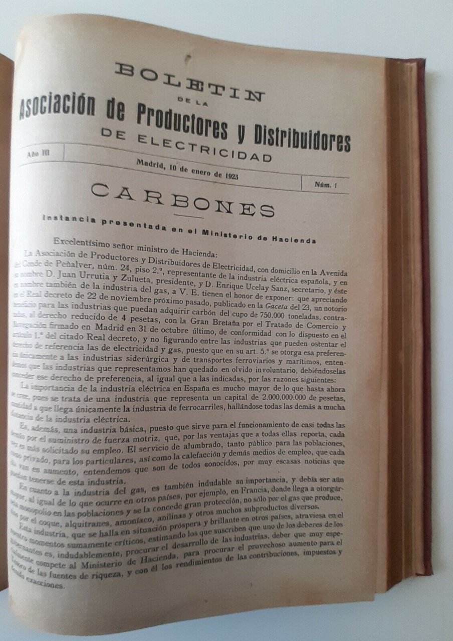 Testo in spagnolo, allegata l'annata del " boletin de la asociacion de productores y distribudores de electricidad".