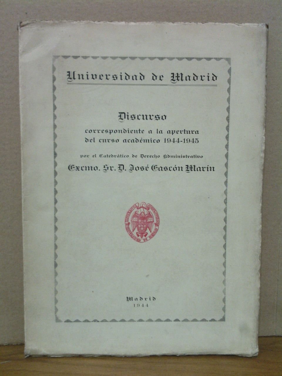 Madrid: Estades. Artes Gráficas, 1950.- 89 p.; 4º (24,5 x 17,2 cm.); Cartulina Ed.* DERECHO ADMINISTRATIVO, POLÍTICO-CONSTITUCIONAL-INTERNACIONAL Y DIPLOMACIA ESPAÑOLA