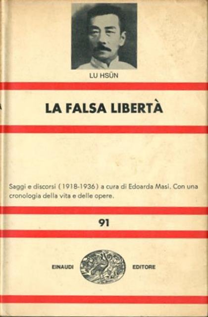 XLII, 401 p. ; 18 x 12 cm. Nuova universale Einaudi, 91. Celebrato come il più eminente scrittore cinese del Novecento e fra i creatori della lingua scritta contemporanea, Lu Xun è il più rappresentativo fra gli uomini colti che si riconoscono nella rivoluzione popolare. La presente raccolta costituisce un condensato della sua estesa produzione saggistica (sedici volumi di saggi e discorsi) e comprende testi fra il 1918 e il 1936, anno della sua morte. Titolo originale dell'opera: «Wei tzu-yu shu». A cura di Edoarda Masi. Lu Hsun pseud. di: Chou Shu-jên. Contiene la cronologia della vita e delle opere dell'Autore. Legatura editoriale, coperta in cartone telato rigido di colore azzurro, titolo in nero al dorso, muto il piatto, sovraccoperta illustrata con alette. Sovraccoperta ingiallita al dorso e al piatto, coperta rigida e interno in buono stato. Codice libreria 1214.