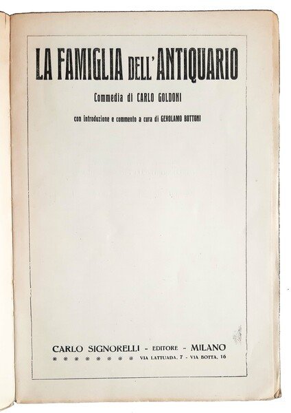 La famiglia dell'antiquario. Commedia di Carlo Goldoni con introduzione a cura di Gerolamo Bottoni