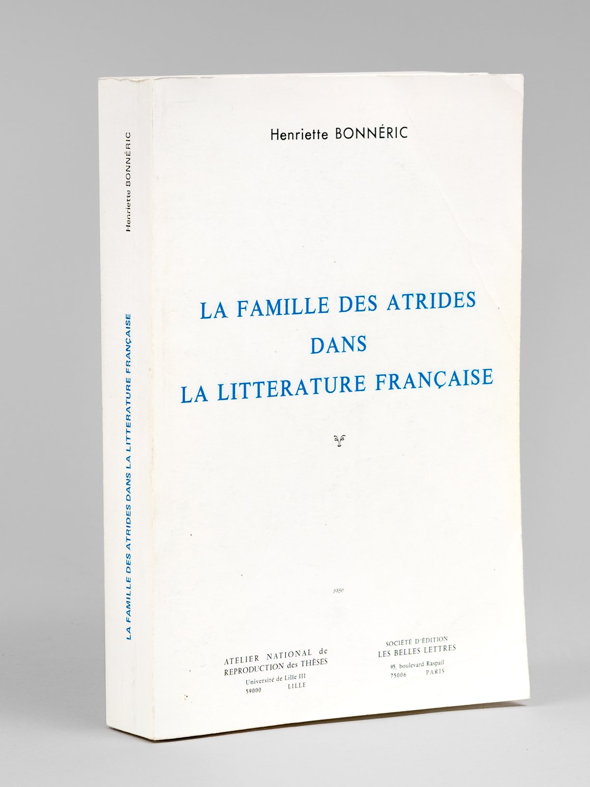 1 vol. in-8 br., Atelier National de Reproduction des Thèses, Lille, Société d'Edition Les Belles Lettres, Paris, s.d., 598 pp. Etat très satisfaisant (lég. pliures en couv., frott. au second plat)