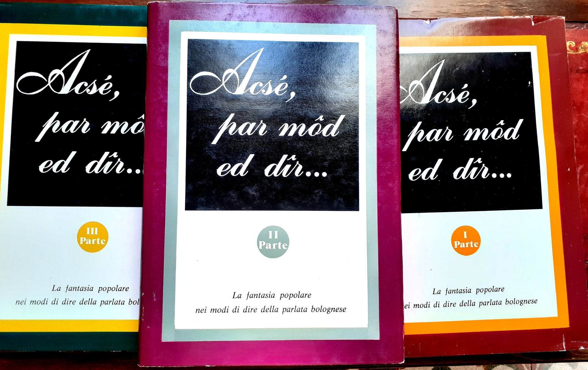 LA FANTASIA POPOLARE NEI MODI DI DIRE DELLA PARLATA BOLOGNESE. Premessa, traduzioni in lingua italiana, annotazioni, esempi, siliografie di Gaetano Marchetti. Testo di sopraccopertina: ACSE' PAR MOD ED DIR.