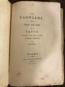 LA FAONIADE. INNI ED ODI TRADOTTI DAL TESTO GRECO IN METRO ITALIANO DA S.I.P.A