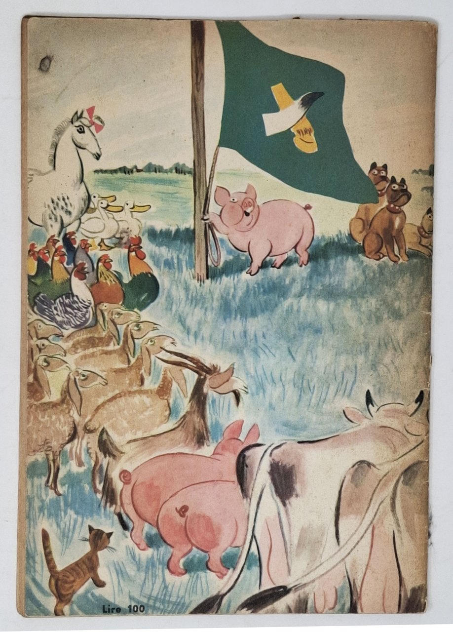 Senza data ma, presumibilmente, 1947. Numero 1 della 'collana illustrata di romanzi celebri e di storie di tutti i tempi'. Formato: 17 x 24,5 cm circa. Pagine: 62 + [2]. Stato di conservazione: un piccolo taglio sul margine superiore della linea di attaccatura tra il dorso e la copertina anteriore,leggere e superficiali abrasioni sul dorso, le prime pagine, separate in maniera grossolana, si presentano un po' frastagliate con qualche piccola mancanza che riguarda esclusivamente il bordo bianco superiore. Nel complesso un esemplare fresco e ben conservato. Privo di firme d'appartenenza, timbri o altri segni di penna o di matita nel testo. In brossura, con copertina flessibile illustrata a colori. Riduzione in fumetto (in bianco e nero) del celebre romanzo di George Orwell.