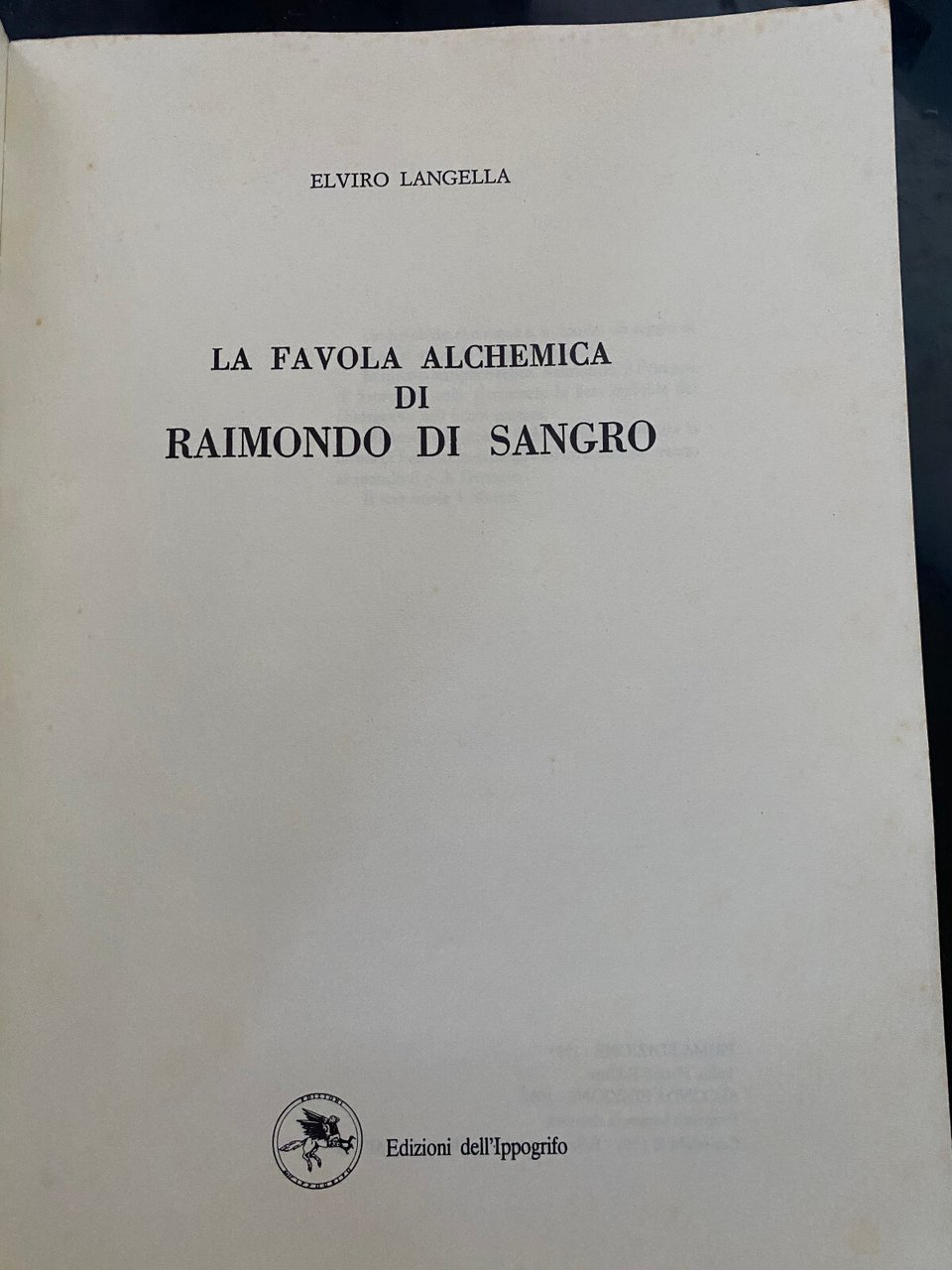 La favola alchemica di Raimondo di Sangro, Elviro Langella, Ippogrifo, 1992