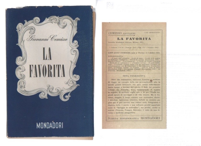LIBROPrima edizione.Leggera e marginale brunitura alla copertina e alle carte interne. Nel complesso un più che buon esemplare ben completo della sovracoperta molto ben conservata e della schedina editoriale.Quarantadue prose di viaggio, alcune inedite. La Favorita che dà il titolo alla raccolta è l’Italia che l’autore percorre da nord a sud, trovando nei piccoli dettagli il filo conduttore della narrazione.